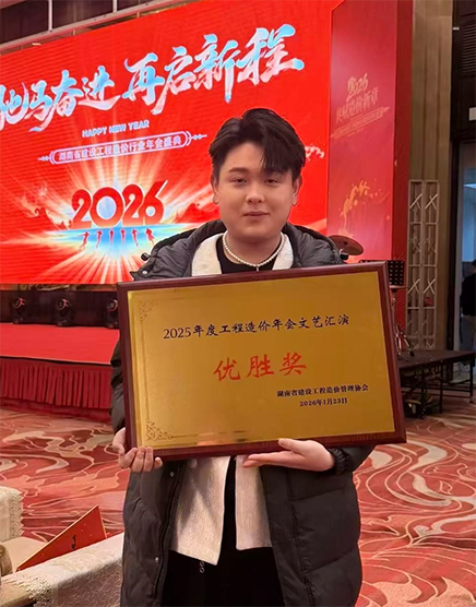 1月23日,湖南省建设工程造价管理协会2025年度年会文艺汇演在长沙现代华天大酒店圆满结束。我司作为协会会员单位积极响应号召,选派邹松豪参演,其参赛曲目《故湘·风》凭借鲜明的行业特色与出色的表演水准,在正式汇演中表现优异,并荣获优胜奖。
