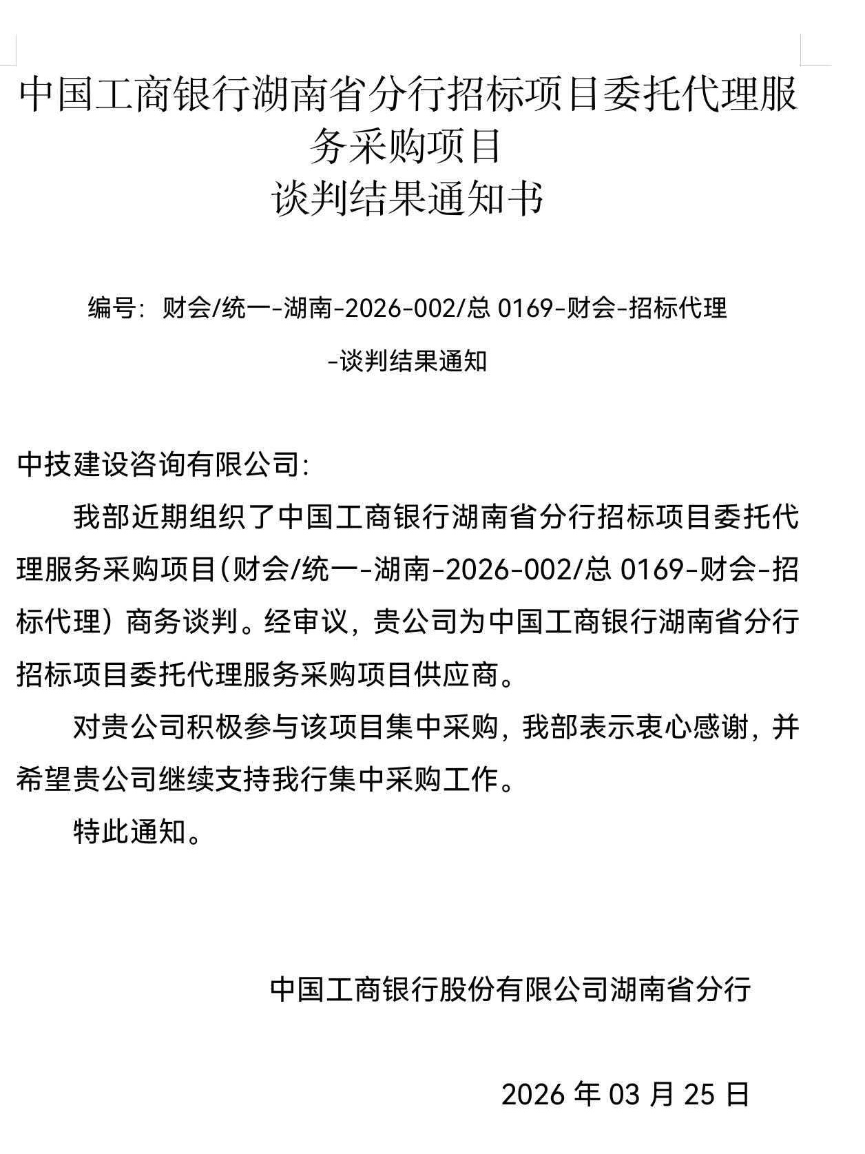 此次合作的达成,不仅体现了我司在招标代理领域的专业实力,也为双方在金融领域招标采购环节的深度协同奠定了良好基础。我司将以此为契机,充分发挥自身优势,组建专业服务团队,严格按照相关法律法规及工行管理要求,为工行湖南省分行提供规范、高效、优质的招标代理服务,全力保障项目建设提质增效,努力打造成为值得客户信赖的招标代理服务品牌。